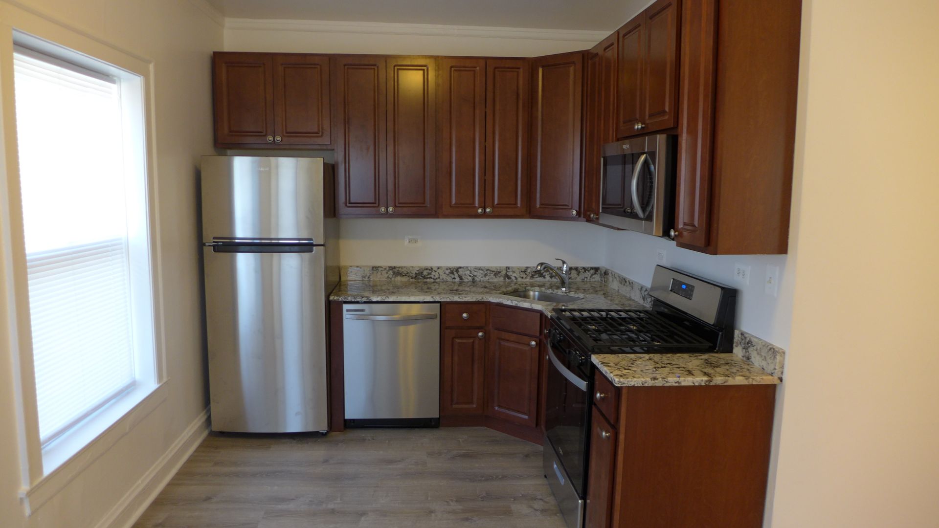 Awesome renovated one bedroom has a kitchen with stainless steel appliances including dishwasher, microwave, granite counter-tops and oak cabinets. The apartment also features, ceiling fans, a large bedroom, beautiful flooring and a custom tiled bathroom. There are many public transportation options with bus routes including the Milwaukee bus to the Blue Line, as well as the Irving Park and Cicero routes.