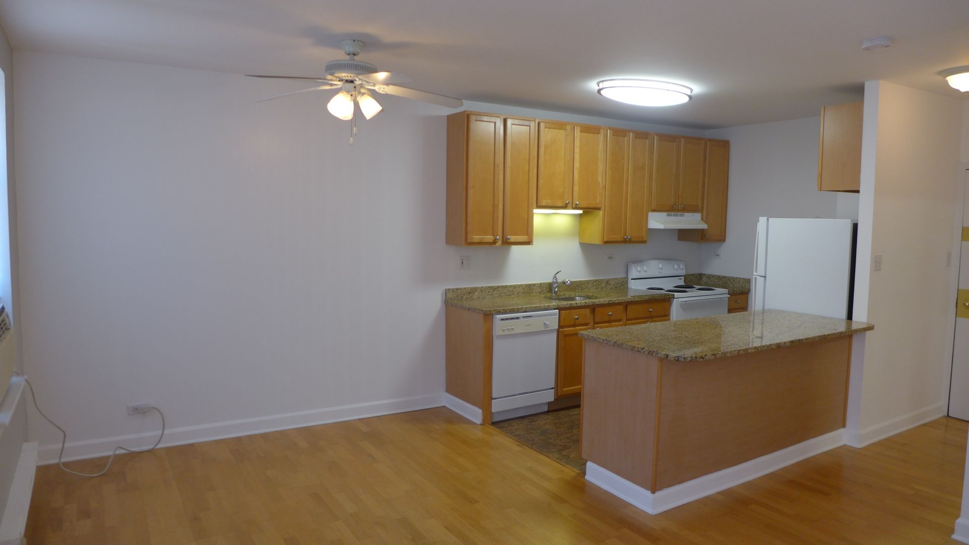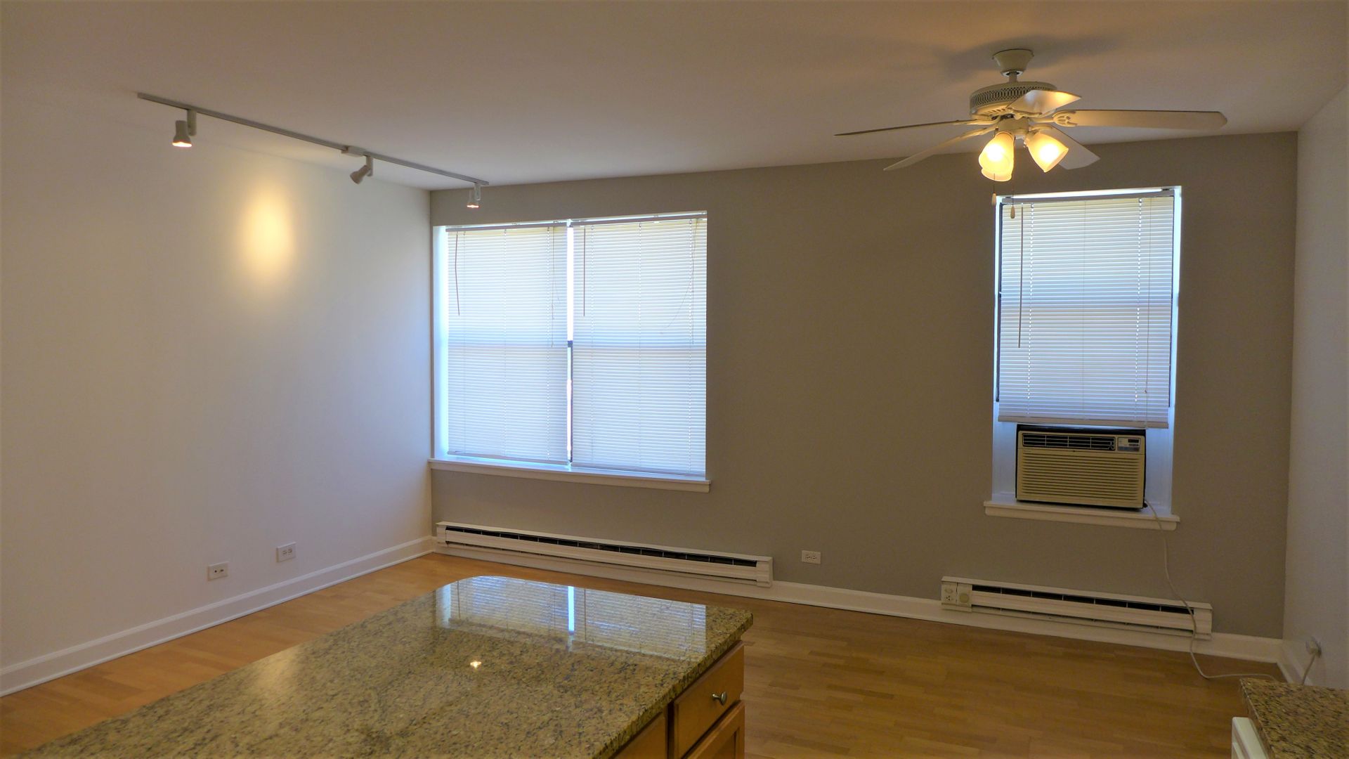 This beautiful corner two bedroom faces Northeast allowing for plenty of sunlight. The apartment features hardwood floors, a renovated kitchen with oak cabinets, granite counter-tops including dishwasher. The unit also has built in AC units, track lighting, ceiling fans along with a custom tiled fully remodeled bathroom. Close to public transportation, Montrose Beach, shopping and entertainment.