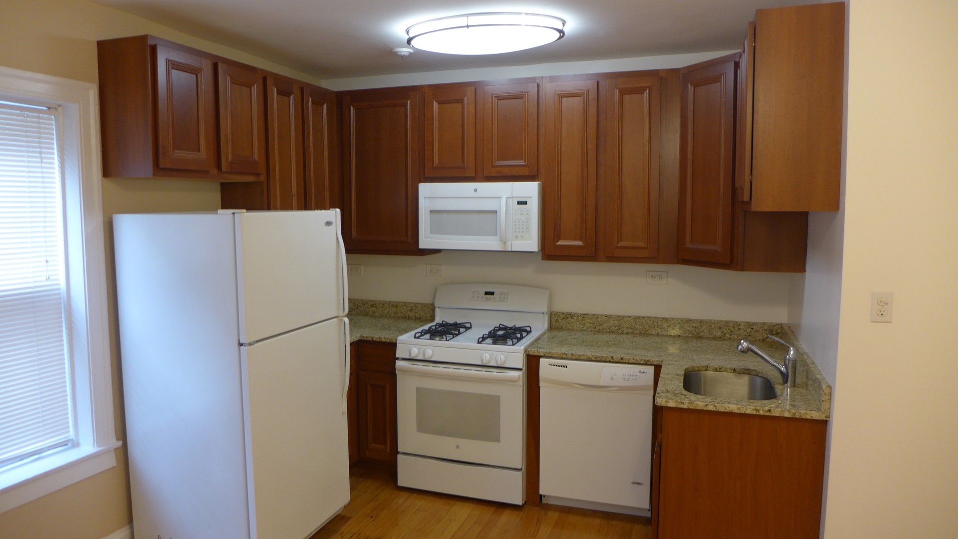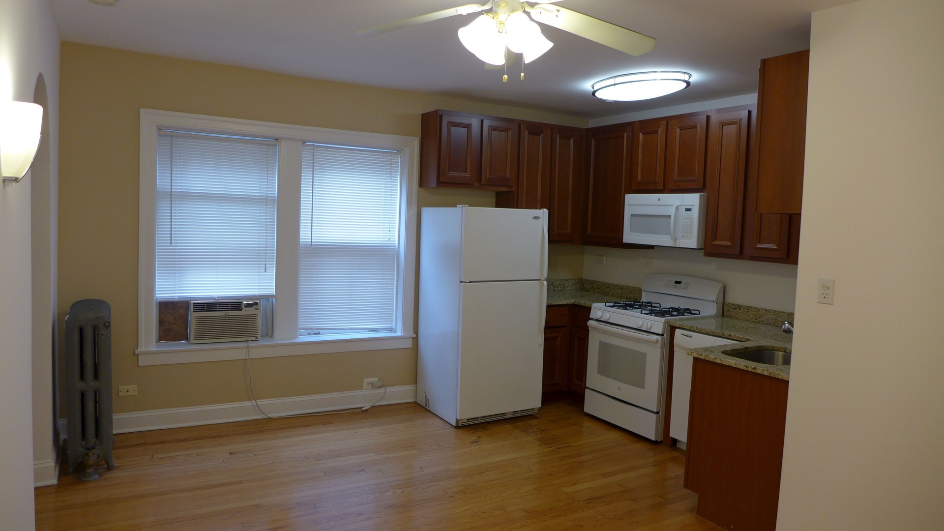 This west facing apartment has beautiful hardwood floors, plenty of closet space and a spectacular remodeled kitchen with oak cabinets a dishwasher, microwave and granite counter-tops. The unit also features a renovated custom tiled ceramic bathroom, track lighting and ceiling fans. Close to public transportation, North Avenue Beach, restaurants, shopping and entertainment. Bike room, laundry and additional storage in the building.