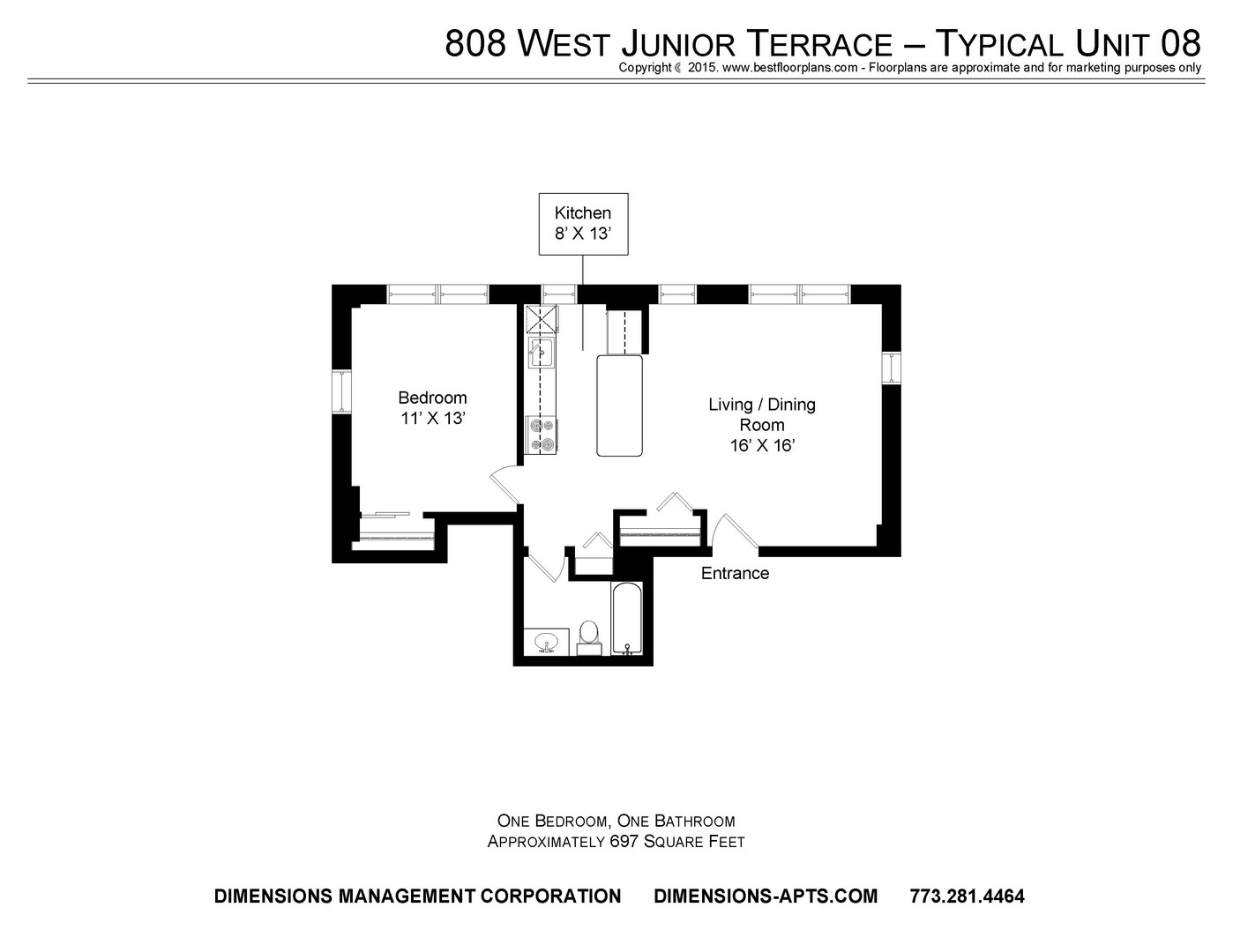 To view visit our website dimensions-apts.com or call 773-281-4464 Option 1