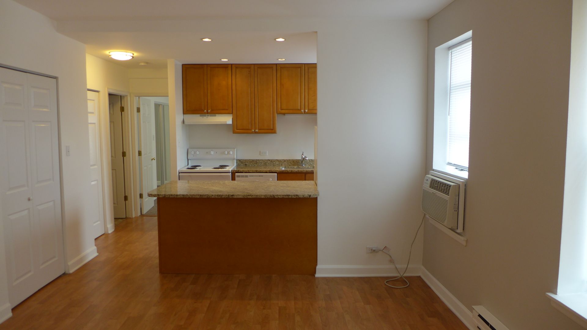 Great Buena Park 1 bedroom featuring a renovated kitchen with oak cabinets, granite counter-tops and includes a dishwasher. The tiled bathroom is completely remodeled including fixtures along with a ceramic tile floor. The unit has hardwood floors, AC unit as well as track lighting and ceiling fans. Public transportation options and Montrose Beach with jogging & bike paths are within close proximity.